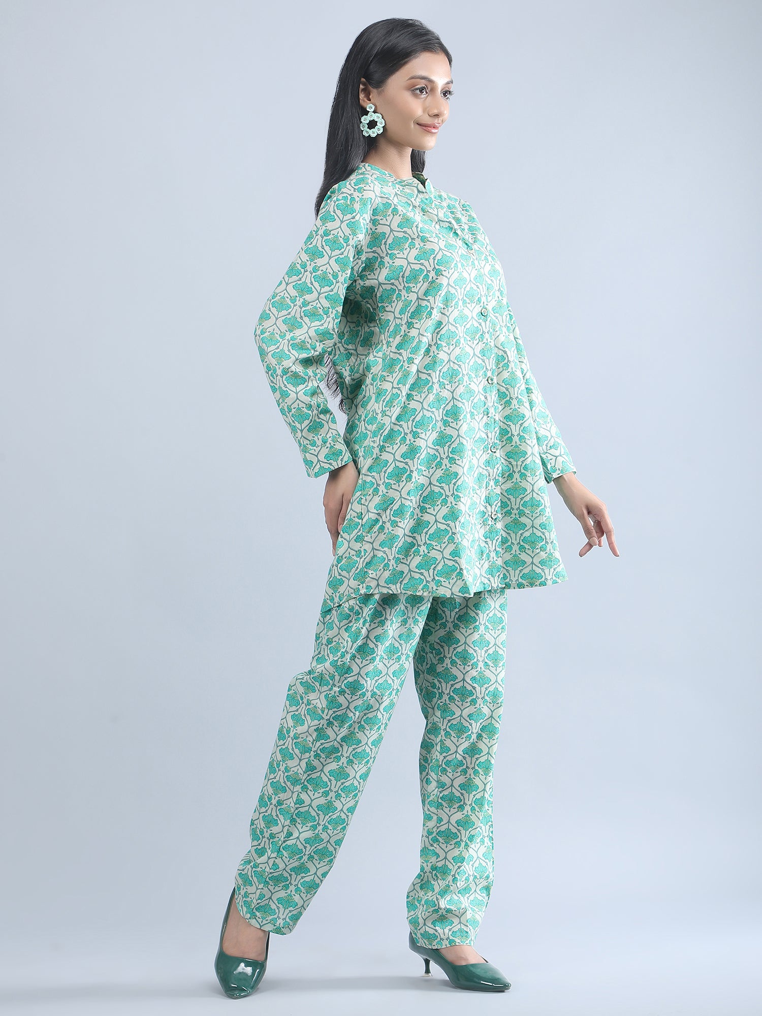 A Canvas of Comfort & Style: Crafted with breathable cotton and adorned with timeless prints, this Printed Pure Cotton Co-ord Set is a celebration of ease and sophistication. Whether it's work or leisure, step out in effortless charm.